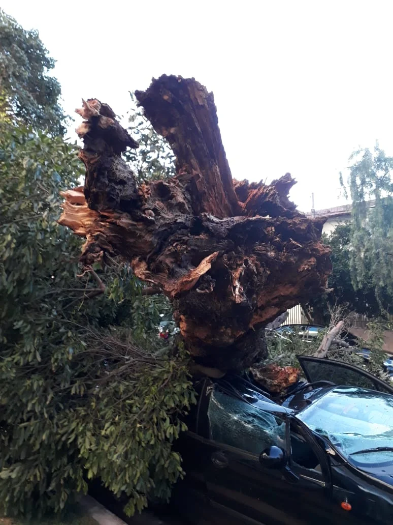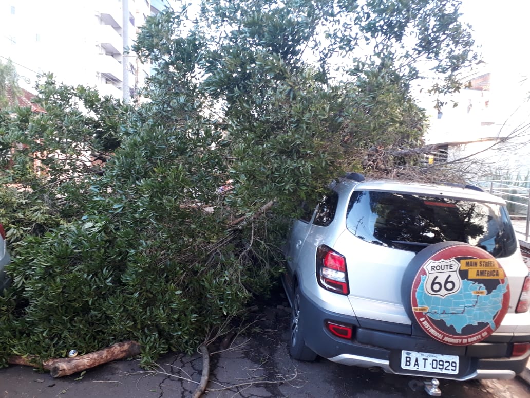 No Jardim Maringá, três carros foram atingidos por árvores na rua Clevelândia.