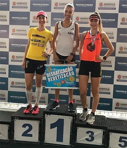 Aí o Gaiato viu esta foto do pódio da Prova Rústica Tiradentes, vencida por Gleice Cavalheiro, que segurava uma sugestiva placa e já tascou: