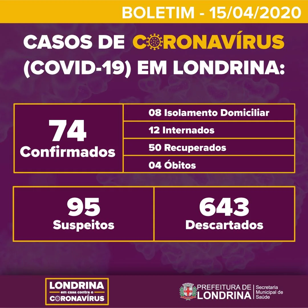 Informa a gloriosa prefeitura de Londrina que hoje não houve nenhum novo caso de coronavirus confirmado na cidade.