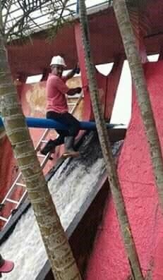 O acidente de trabalho na época parece não ter sido uma lição para Roberto Fu. Dias atrás ele publicou a foto acima, pintando a barragem do Lago Igapó. Pois bem, este blog, que quer ajudar a reduzir os riscos de acidentes com o vereador enviou a foto para o técnico em segurança no trabalho, Luiz Fernando Egidio.