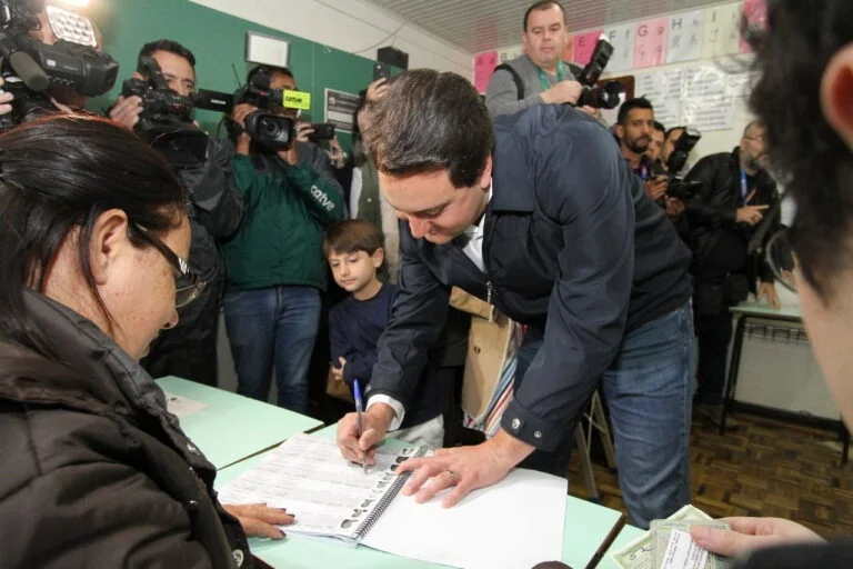 Ratinho Jr vota em Curitiba e diz que esta confiante