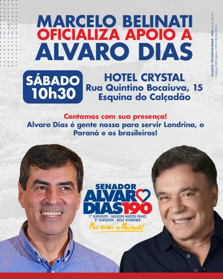 TRE nega recurso de Silvestri e mantém aliança entre Álvaro Dias e Federação PSDB/Cidadania