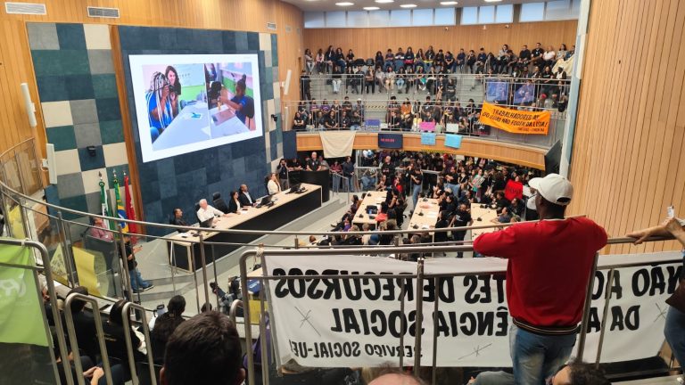 Câmara de vereadores lotada para discutir corte no orçamento da Secretaria de Assistência. Entidades denunciam desmonte dos projetos sociais